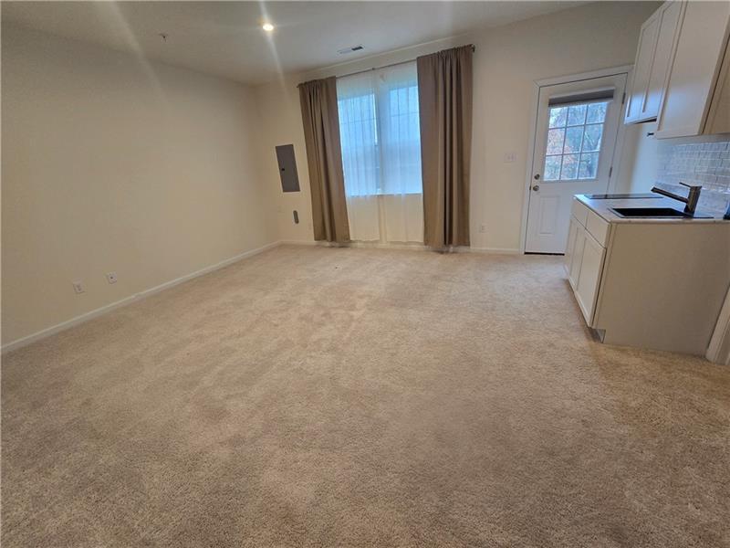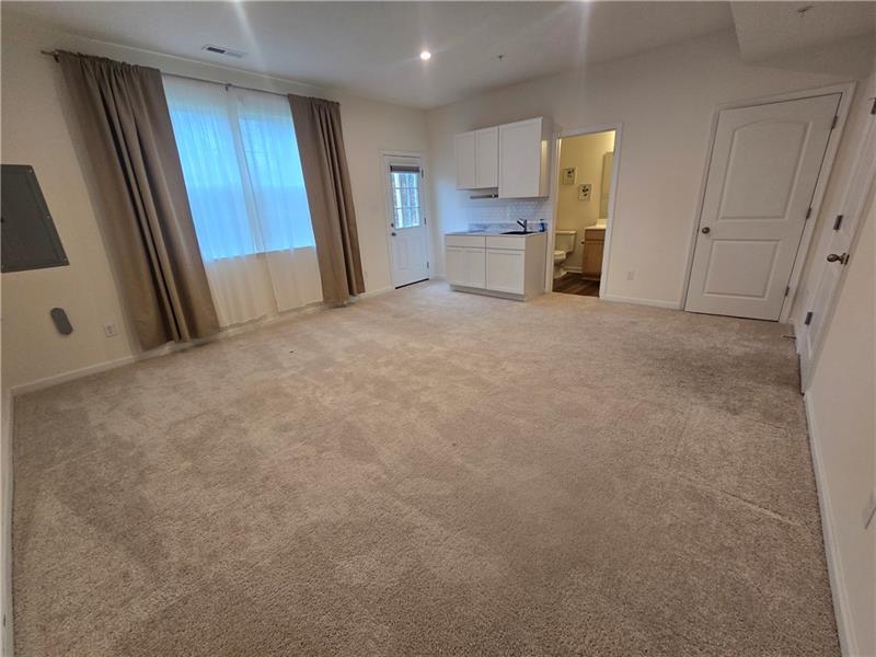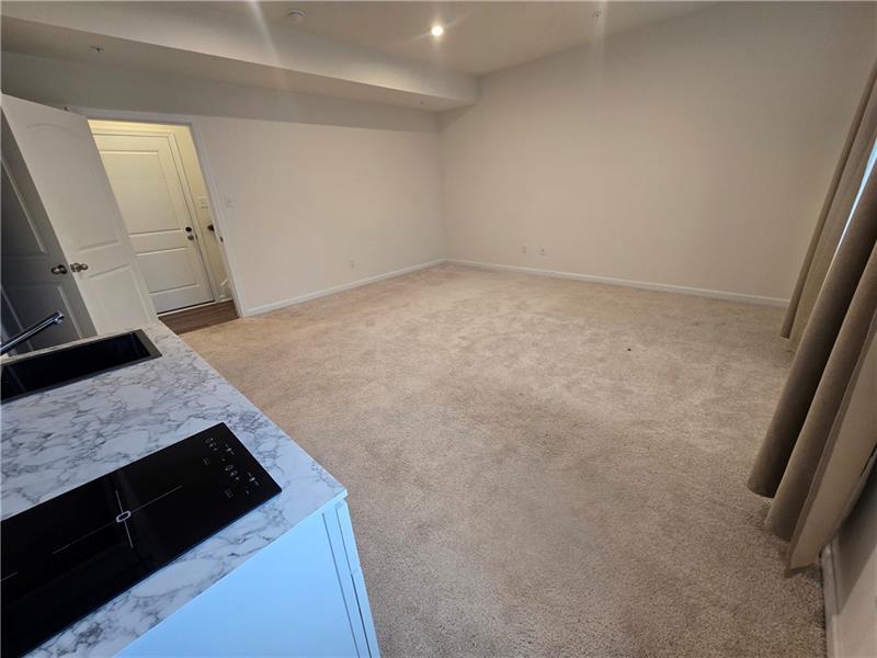 738 Olivia St is a beautifully designed 4-bed, 3.5-bath townhome in the Pittsburgh suburb of Collier Township. The main level features wood flooring and an open layout connecting the kitchen, dining, and living spaces. A spacious dining area with sliding glass doors brings in abundant natural light, while the bright living room is framed by large windows. Modern kitchen offers dark cabinetry, white countertops, a marble subway backsplash, stainless steel appliances, and a 9-foot island with seating. A half bath completes this level. Upstairs are three comfortable bedrooms, including a well-appointed primary suite. Basement level you will find a large living space with a kitchenette and washer/dryer combo.