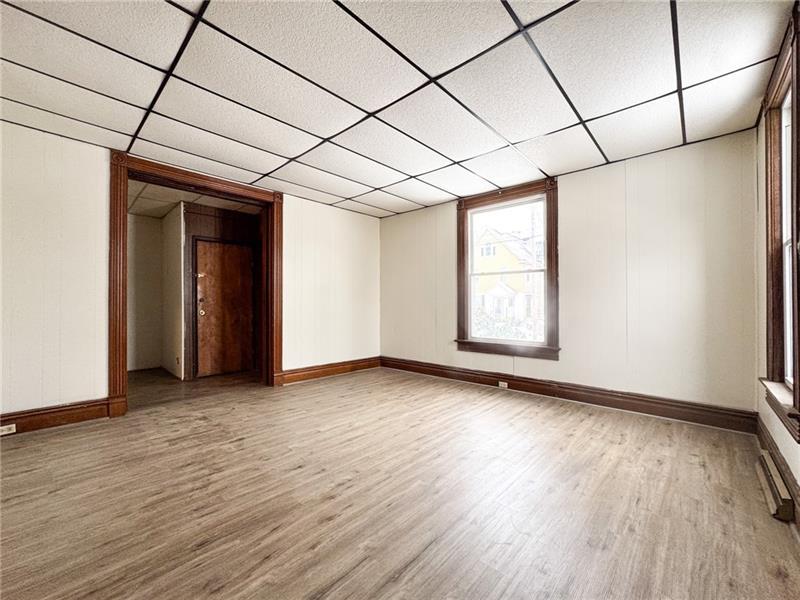 This beautifully renovated 1-bedroom, 1-bath first-floor unit is located in a duplex in New Castle and offers a rare blend of modern updates and original character. The unit features new flooring and fresh paint throughout, a brand-new refrigerator, high ceilings, and large windows that fill the space with natural light. Stunning architectural details and original woodwork add warmth and charm you won't find in a typical rental. The unit offers private exterior access through the back porch, which is for tenant use only, and opens to a large shared backyard'perfect for enjoying outdoor space. A truly special and well-maintained home with plenty of character.