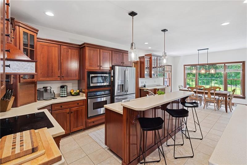 Offered in Woodland Hills, this custom built, brick, 4 bedroom 3.5 bathroom home is completely move in ready! Spacious 3 car garage. Brand-new 50 year roof installed 2024. Tons of natural light pours through the open concept main floor, designed with vaulted ceilings. The four season sunroom leads out to a private rear patio & lovely backyard setting. First floor laundry. Professional home office. French doors open to large master suite with a robust private bathroom and huge walk in closet. Finished lower level is perfect for hosting, equipped with a bar and private gym. Central vacuum. Shenango School District. Convenient to i79 & 376. Lease comes FULLY furnished and with all appliances. Lease term is negotiable. No pets.