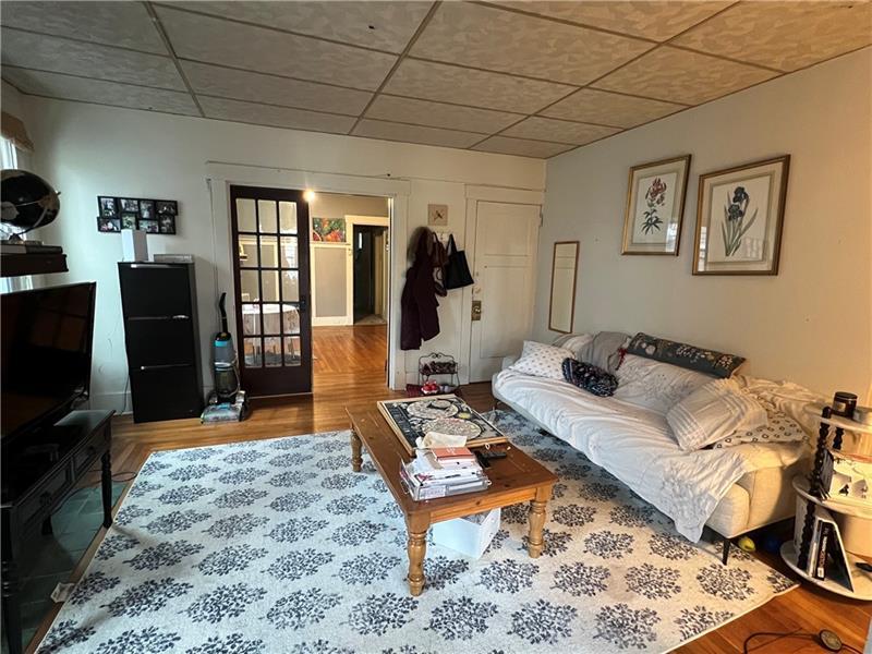 In the heart of Shadyside! A few blocks to the Walnut and Ellsworth business districts. This is a very spacious apartment with Beautiful original features like wood trim and wainscotting, decorative fireplace, hardwood floors throughout and newer carpet in the bedrooms. One enters into a sunroom which can be used as an office, sitting room, mudroom and/or multi-purpose area. The living room and dining room are separate large rooms with magnificent architectural detailing. The dining room has original built-ins. The kitchen opens to a porch and the parking area. There is 1 bath and 2 bedrooms- 2nd floor unit. The basement has plenty of storage and a washer and dryer. One block to the bus stop, walk to UPMC, Chatham University, Pitt & CMU, the park, shopping, dining & entertainment. Tenant pays gas and electric. No Smoking! Owner supplies 2 AC units! Move in for May 1! More photos to come!